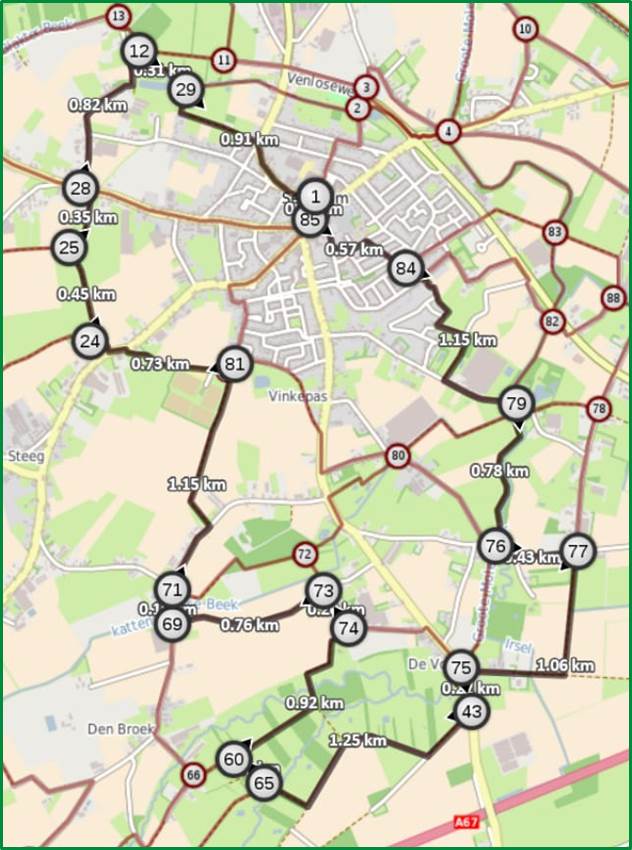| Knooppunten | 85-84-79-76-75-43-65-60-74-73-72-71-81-24-25-28-12-29-1-85 | |